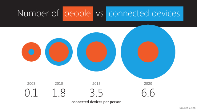 The number of connected devices is more than number of people since 2008. Source: Cisco